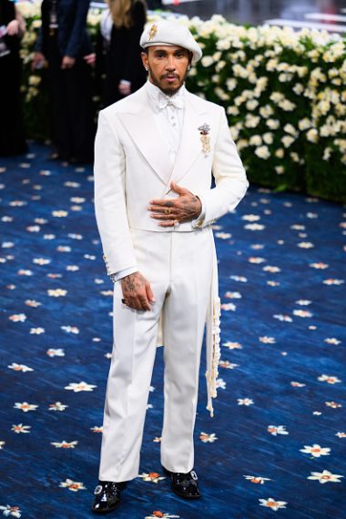 Lewis Hamilton In custom Wales Bonner, gioielli Briony Raymond