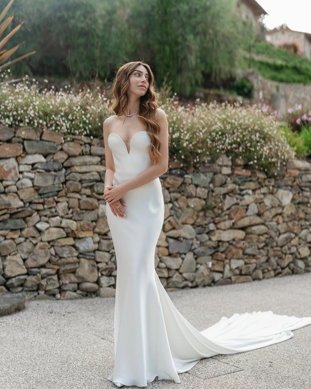 Arianna Cirrincione e Andrea Cerioli sono convolati a nozze, dopo sei anni insieme e la nascita di una figlia. Nel fatidico giorno del sì, la sposa ha indossato due creazioni firmate Pronovias.