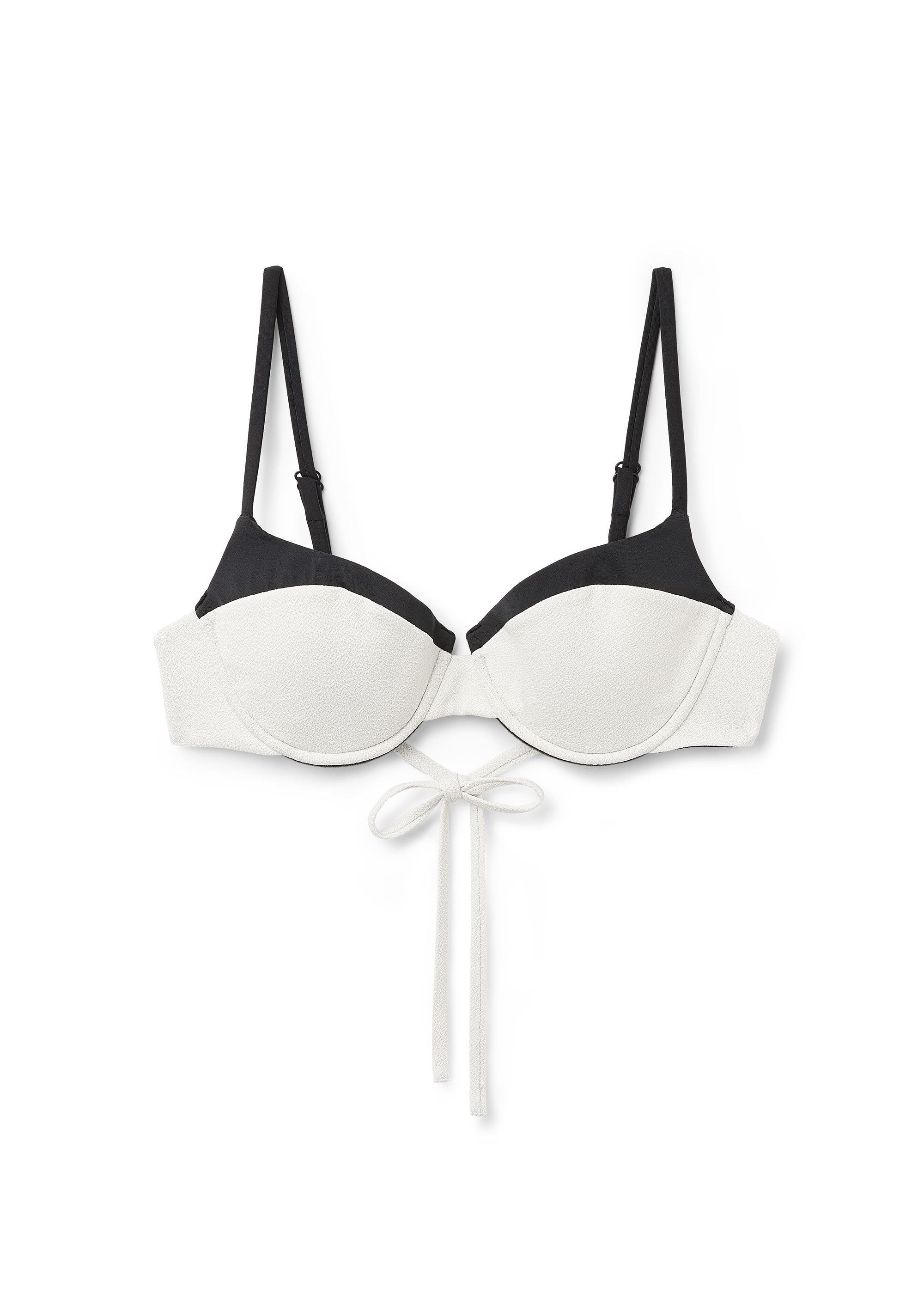 Profili bianchi a contrasto su fondo dal colore intenso, blocchi di tonalità opposte che creano particolari effetti ottici e giochi grafici caratterizzano i costumi più trendy per l'estate 2025