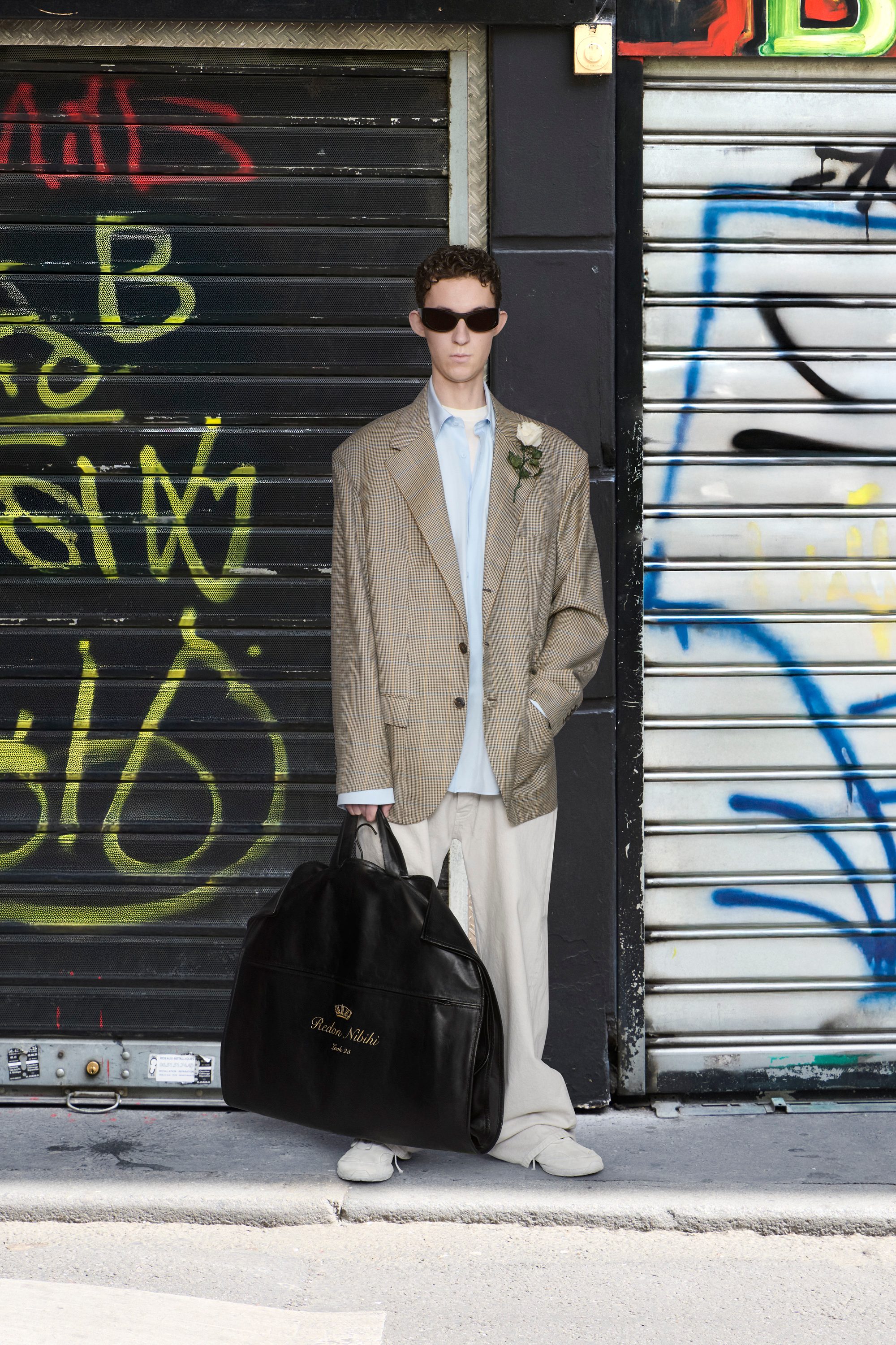 Sfila alla Settimana dell'Alta Moda di Parigi la collezione Haute Couture Autunno/Inverno 2025-2026 di Balenciaga, l'ultima firmata da Demna. In passerella appaiono le icone e i feticci del designer, dalle linee esagerate e drammatiche di abiti da sera scultorei e di completi con blazer e pantaloni oversize, ai bomber street style, fino ai piumini e agli abiti in pelle nera con spalline appuntite