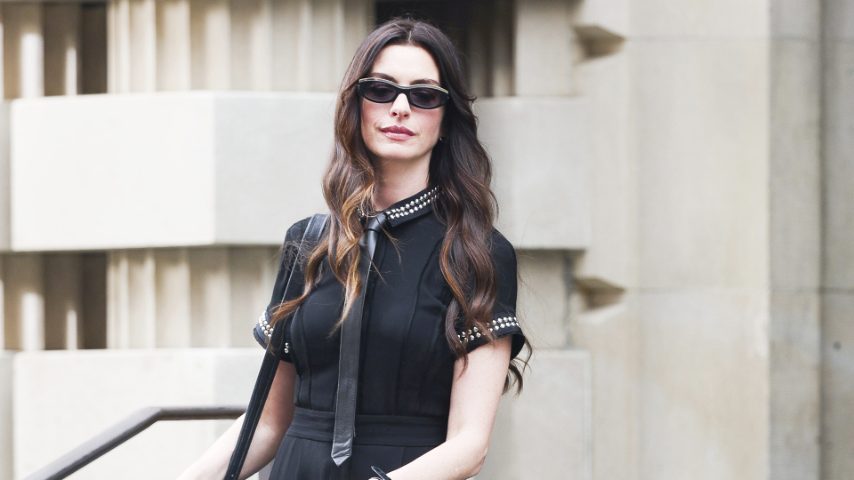 • Anne Hathaway con giacca Ralph Lauren e borsa Valentino Garavani