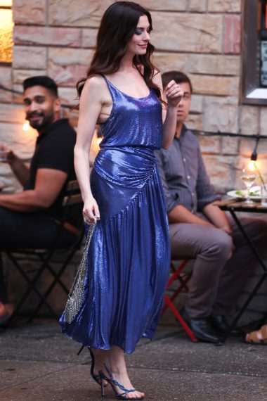 • Anne Hathaway con gonna Fendi e scarpe Bijou Studded