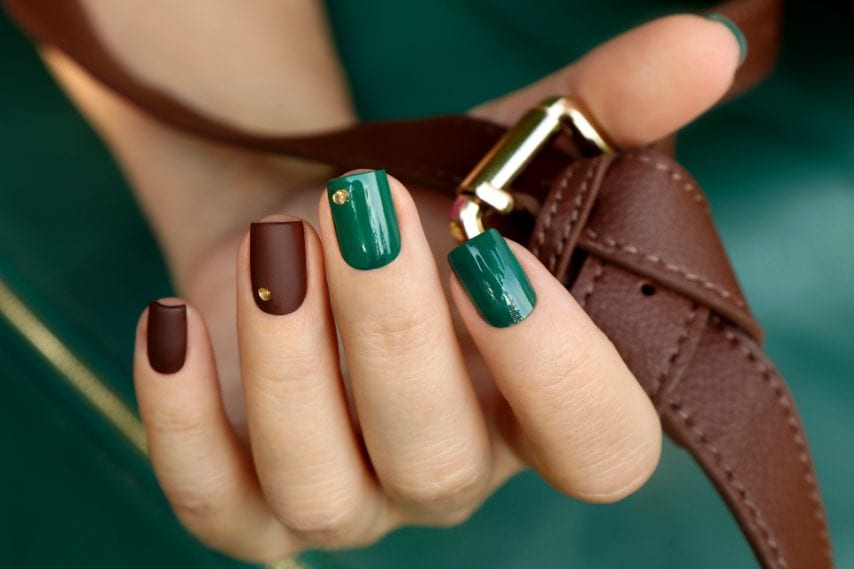 Manicure bicolor marrone e verde