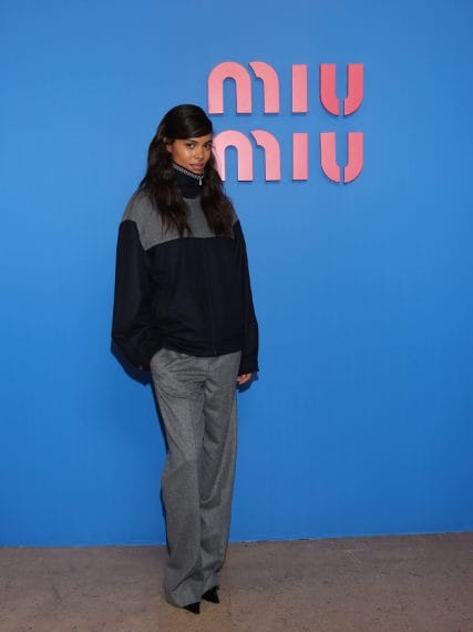 Tina Kunakey alla sfilata di Miu Miu
