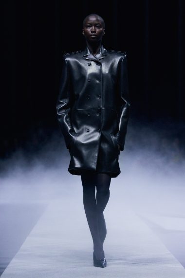 Capi in pelle, linee spigolose alternate e sinuose ruche, margherite che sembrano sbocciare sulla seta e scultorei abiti clessidra sfilano a New York sulla passerella Primaver/Estate 2026 di Khaite