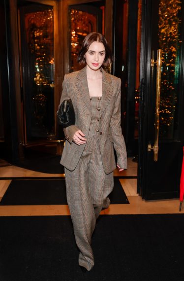 • Lily Collins in Roberto Cavalli con Fendi Baguette