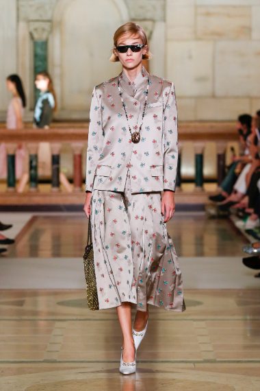 Gonne in pelle a vita bassa, morbide polo, abiti stropicciati, power suit fantasia e tocchi di colore, dal giallo burro al ceruleo, sfilano a New York sulla passerella Primavera/Estate 2026 di Tory Burch