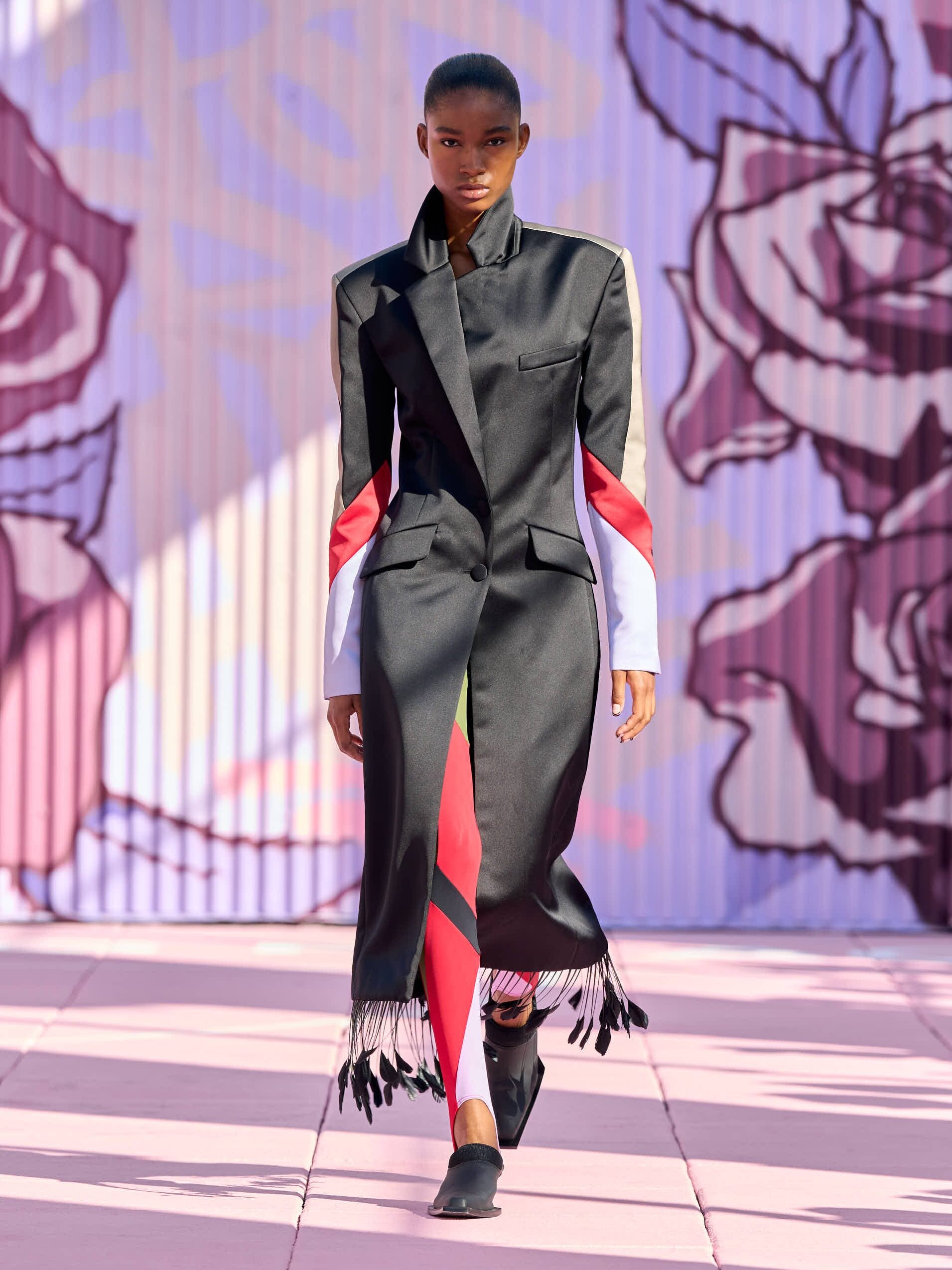 Capi a blocchi di colore e sfumature tie dye, completi in denim, body cut out e look multi tasche sfilano a New York sulla passerella Primavera/Estate 2026 di Off White