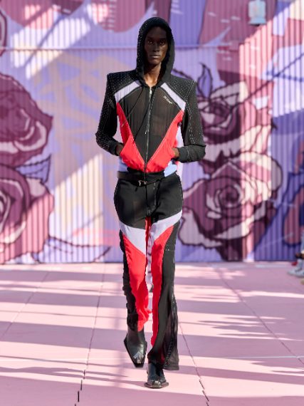 Capi a blocchi di colore e sfumature tie dye, completi in denim, body cut out e look multi tasche sfilano a New York sulla passerella Primavera/Estate 2026 di Off White