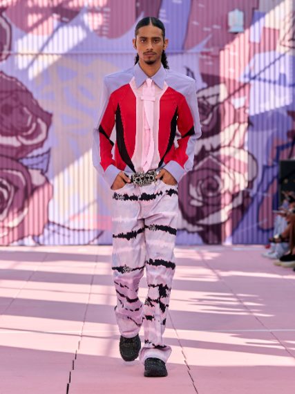 Capi a blocchi di colore e sfumature tie dye, completi in denim, body cut out e look multi tasche sfilano a New York sulla passerella Primavera/Estate 2026 di Off White