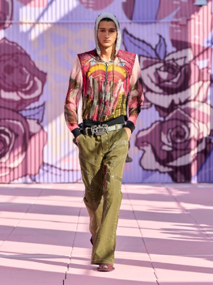 Capi a blocchi di colore e sfumature tie dye, completi in denim, body cut out e look multi tasche sfilano a New York sulla passerella Primavera/Estate 2026 di Off White