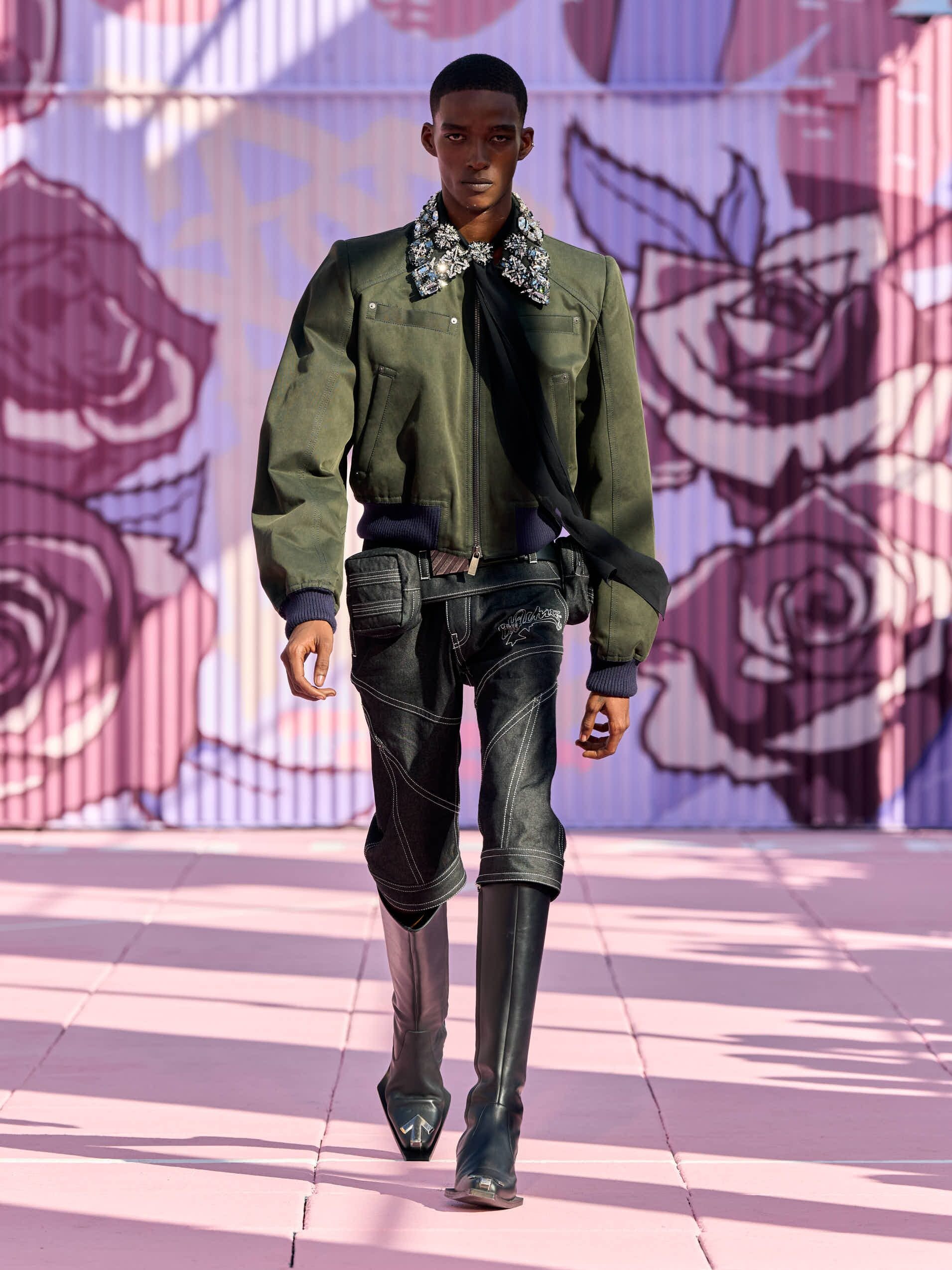 Capi a blocchi di colore e sfumature tie dye, completi in denim, body cut out e look multi tasche sfilano a New York sulla passerella Primavera/Estate 2026 di Off White