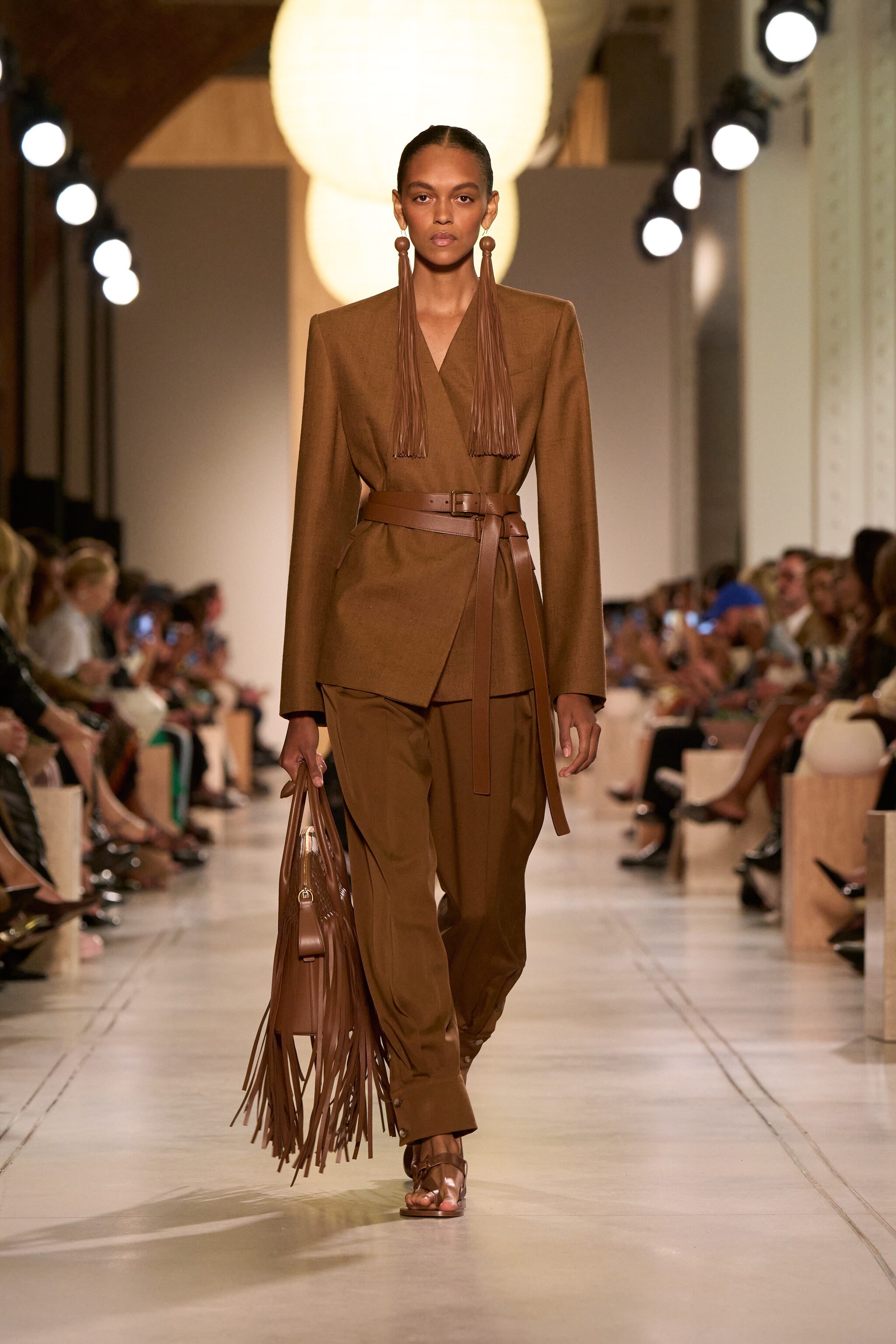 Sinuosi drappeggi e abiti foulard, modelli kimono o con gonne simmetriche e ancora suits oversize, fantasie rigate e accenti di rosa sfilano a New York sulla passerella Primavera/Estate 2026 di Michael Kors Collection