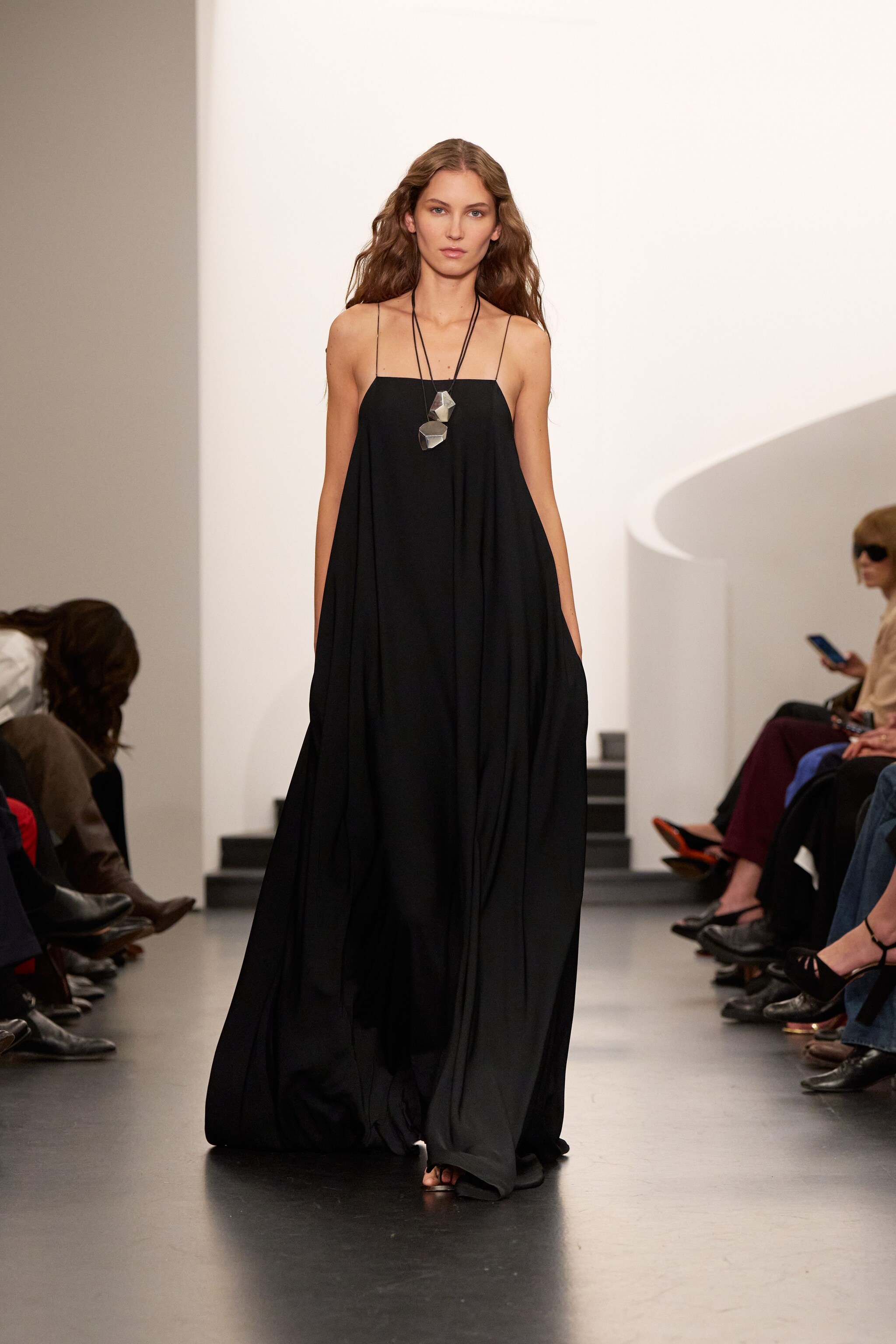 Linee pulite ed essenziali, candidi look bianchi o decorati con mini stripes, fiocchi e cravatte, e ancora sprazzi di rosso intenso, nero e e dettagli sparkling sfilano a New York sulla passerella Primavera/Estate 2026 di Ralph Lauren