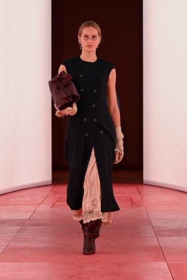 Capi scuri e abiti lingerie in pizzo, grossi pull argyle, bomber con profili furry e bossy look con blazer e cravatta sfilano sulla passerella Autunno/Inverno 2025-2026 di H&M Studio