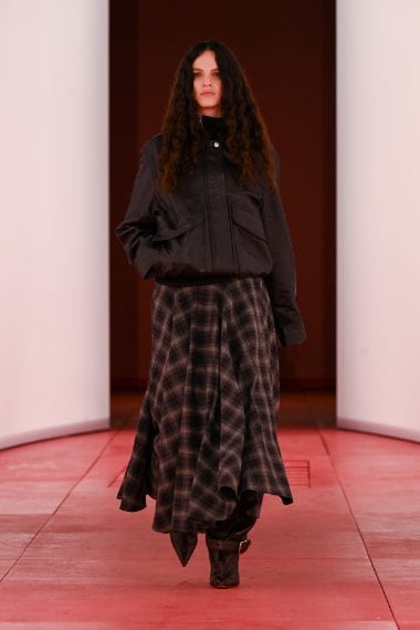 Capi scuri e abiti lingerie in pizzo, grossi pull argyle, bomber con profili furry e bossy look con blazer e cravatta sfilano sulla passerella Autunno/Inverno 2025-2026 di H&M Studio