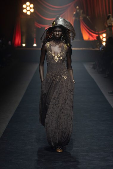 Stile folk, boho chic e gym style si mescolano sulla passerella Primavera/Estate 2026 di Etro by Marco De Vincenzo alla Milano Fashion Week, dove sfilano lunghi abiti coperti di frange colorate e ruche, ricami su capi in denim e intricate fantasie floreali che rivisitano il classico paisley della Maison