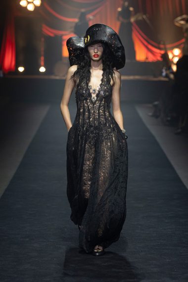 Stile folk, boho chic e gym style si mescolano sulla passerella Primavera/Estate 2026 di Etro by Marco De Vincenzo alla Milano Fashion Week, dove sfilano lunghi abiti coperti di frange colorate e ruche, ricami su capi in denim e intricate fantasie floreali che rivisitano il classico paisley della Maison