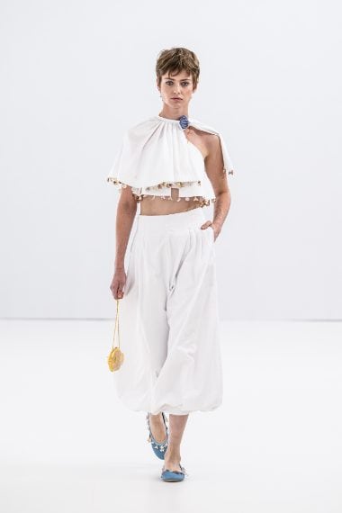 Bianco candido, rosa pallido e verde menta, gonne ballon e volumetrici drappeggi e ancora fantasie a scacchi e abiti a rete sfilano alla Milano Fashion Week sulla passerella Primavera/Estate 2026 di Vivetta