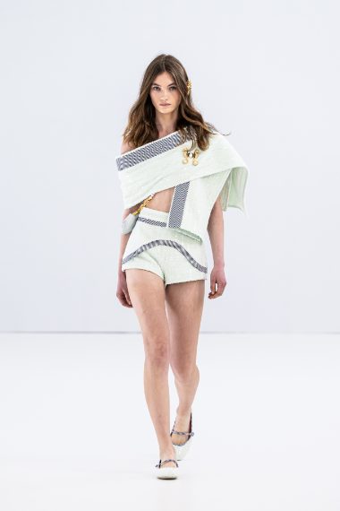 Bianco candido, rosa pallido e verde menta, gonne ballon e volumetrici drappeggi e ancora fantasie a scacchi e abiti a rete sfilano alla Milano Fashion Week sulla passerella Primavera/Estate 2026 di Vivetta