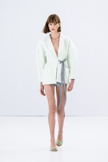 Bianco candido, rosa pallido e verde menta, gonne ballon e volumetrici drappeggi e ancora fantasie a scacchi e abiti a rete sfilano alla Milano Fashion Week sulla passerella Primavera/Estate 2026 di Vivetta
