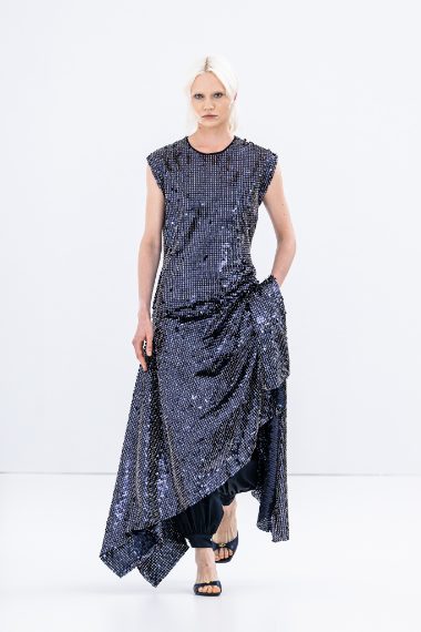 Bianco candido, rosa pallido e verde menta, gonne ballon e volumetrici drappeggi e ancora fantasie a scacchi e abiti a rete sfilano alla Milano Fashion Week sulla passerella Primavera/Estate 2026 di Vivetta