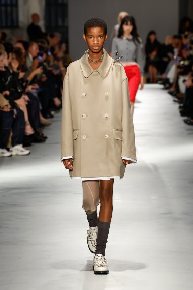 Giacche in pelle dalla silhouette eightees, abiti in lamè dorato, vestiti sottoveste indossati con maxi felpe e impalpabili modelli in seta trasparente sfilano alla Milano Fashion Week sulla passerella Primavera/Estate 2026 di N21