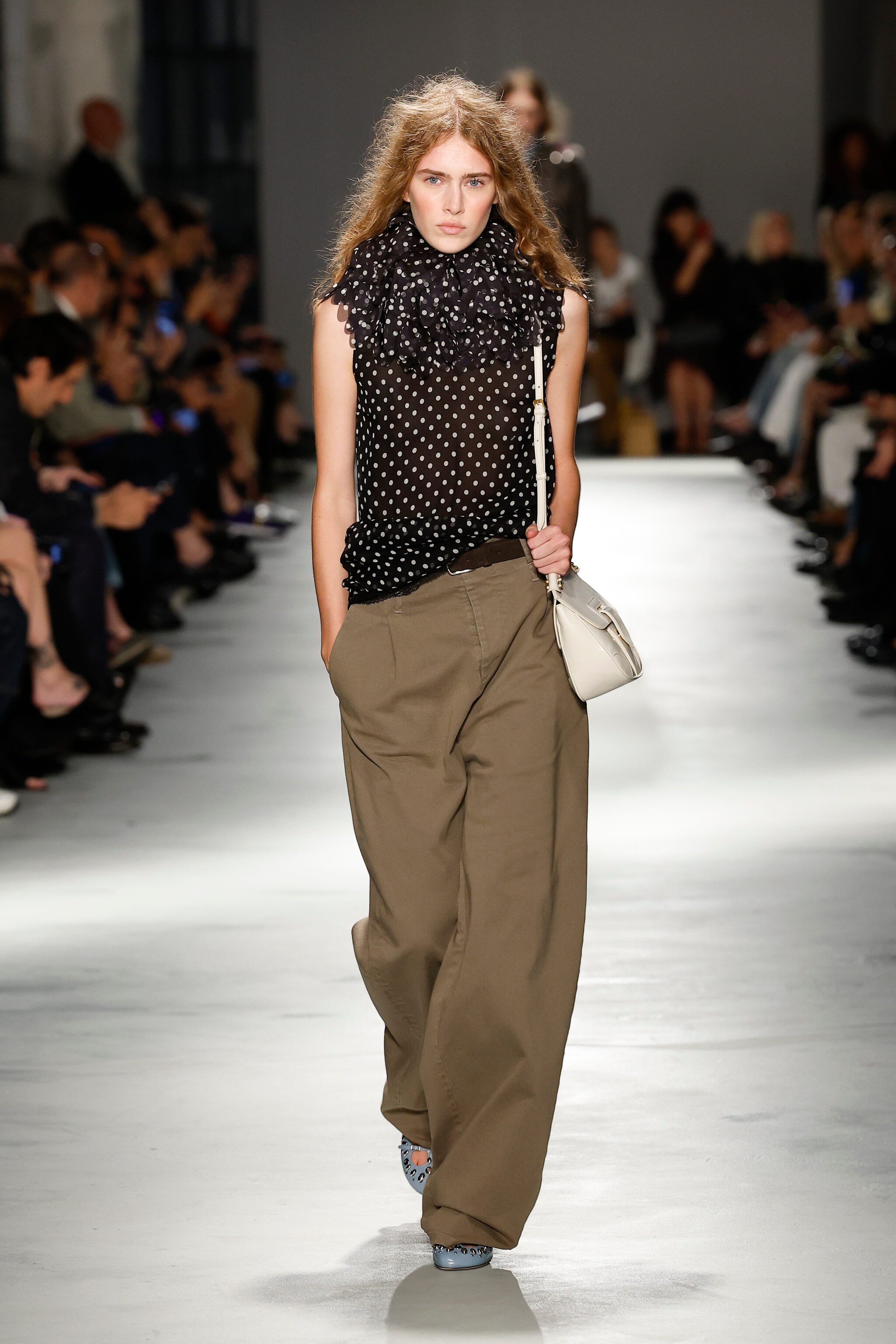 Giacche in pelle dalla silhouette eightees, abiti in lamè dorato, vestiti sottoveste indossati con maxi felpe e impalpabili modelli in seta trasparente sfilano alla Milano Fashion Week sulla passerella Primavera/Estate 2026 di N21