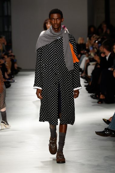 Giacche in pelle dalla silhouette eightees, abiti in lamè dorato, vestiti sottoveste indossati con maxi felpe e impalpabili modelli in seta trasparente sfilano alla Milano Fashion Week sulla passerella Primavera/Estate 2026 di N21