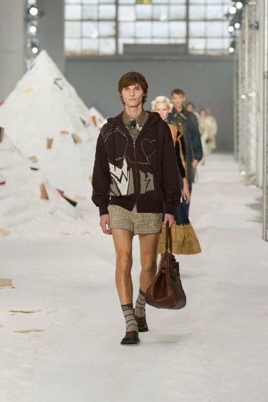 Soavi abiti in seta lilla e sontuosi modelli principeschi in tulle, fantasie floreali, stampe rigate e capi in denim patchwork sfilano alla Milano Fashion Week sulla passerella Primavera/Estate 2026 di Antonio Marras