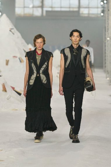 Soavi abiti in seta lilla e sontuosi modelli principeschi in tulle, fantasie floreali, stampe rigate e capi in denim patchwork sfilano alla Milano Fashion Week sulla passerella Primavera/Estate 2026 di Antonio Marras