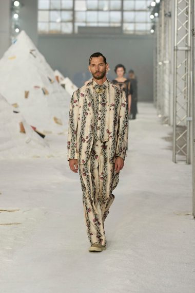 Soavi abiti in seta lilla e sontuosi modelli principeschi in tulle, fantasie floreali, stampe rigate e capi in denim patchwork sfilano alla Milano Fashion Week sulla passerella Primavera/Estate 2026 di Antonio Marras