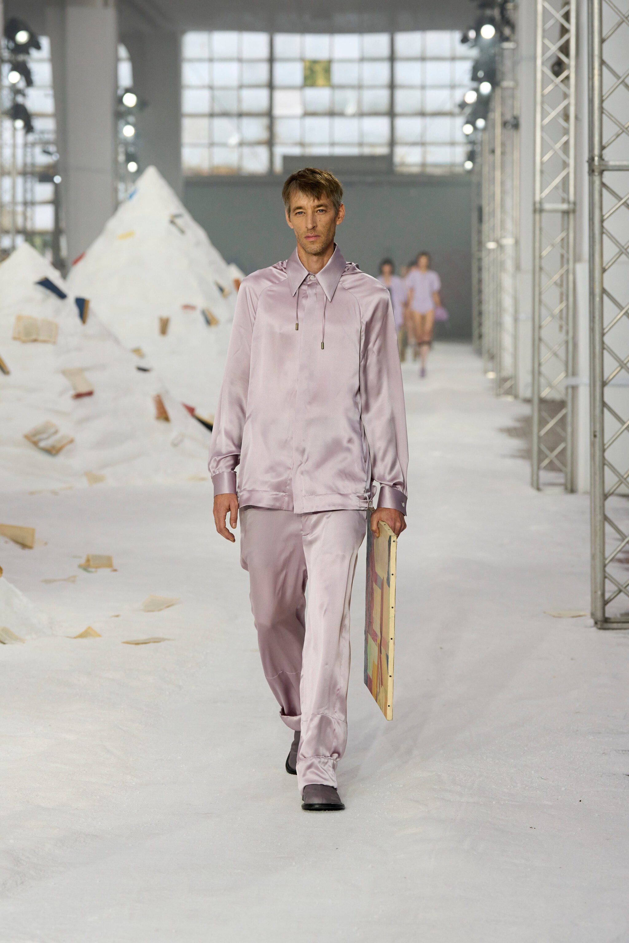 Soavi abiti in seta lilla e sontuosi modelli principeschi in tulle, fantasie floreali, stampe rigate e capi in denim patchwork sfilano alla Milano Fashion Week sulla passerella Primavera/Estate 2026 di Antonio Marras