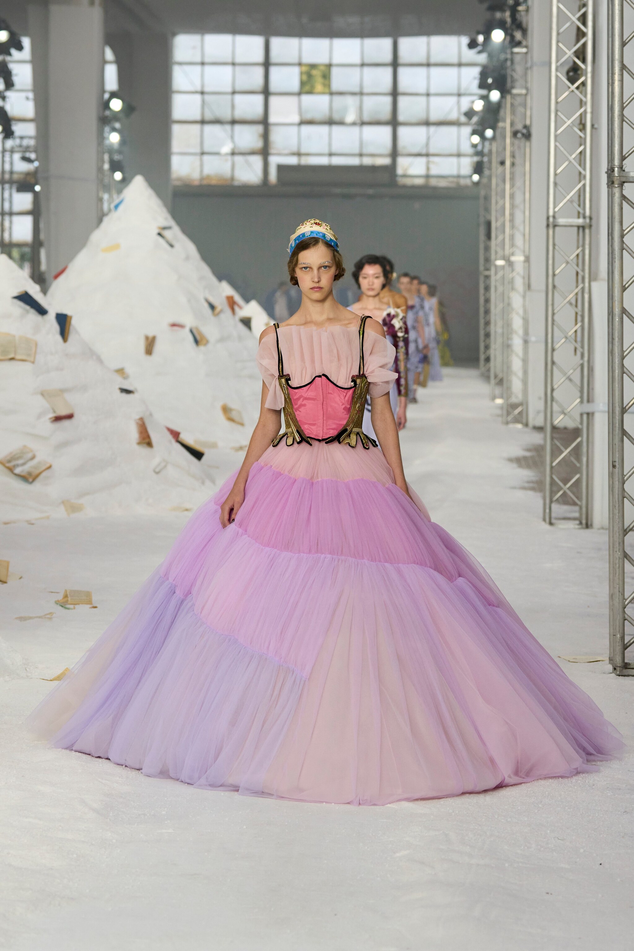 Soavi abiti in seta lilla e sontuosi modelli principeschi in tulle, fantasie floreali, stampe rigate e capi in denim patchwork sfilano alla Milano Fashion Week sulla passerella Primavera/Estate 2026 di Antonio Marras