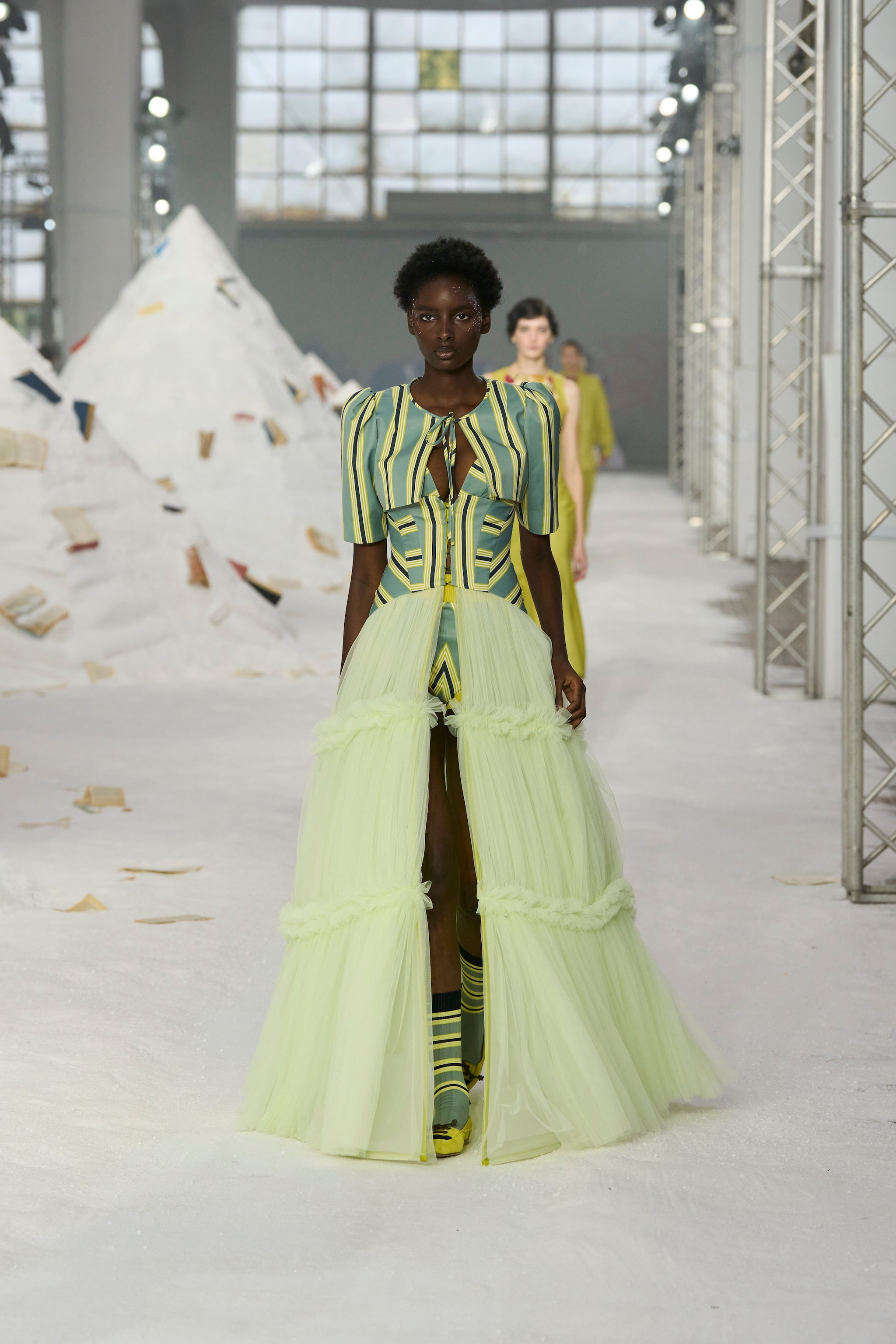 Soavi abiti in seta lilla e sontuosi modelli principeschi in tulle, fantasie floreali, stampe rigate e capi in denim patchwork sfilano alla Milano Fashion Week sulla passerella Primavera/Estate 2026 di Antonio Marras