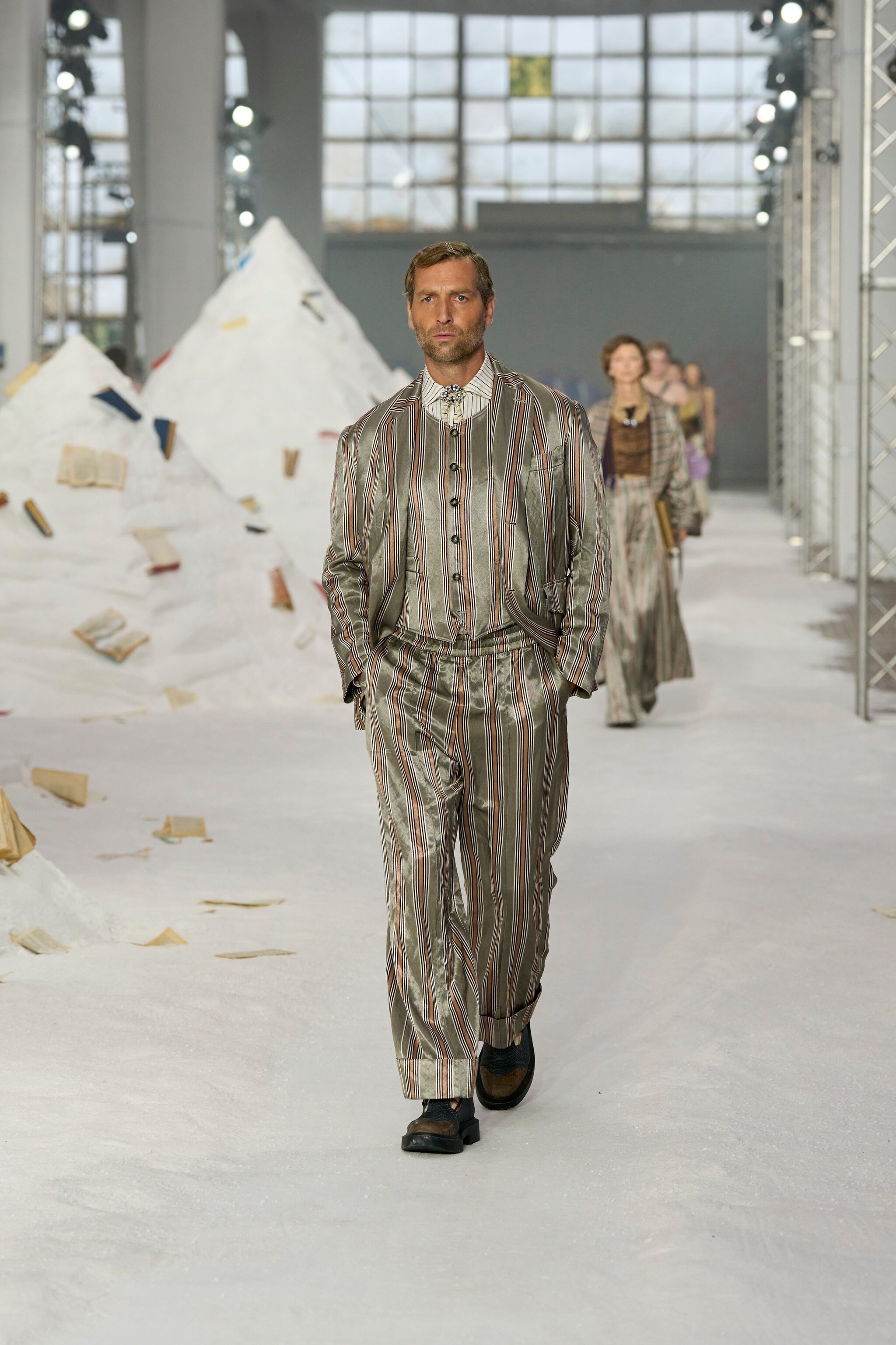 Soavi abiti in seta lilla e sontuosi modelli principeschi in tulle, fantasie floreali, stampe rigate e capi in denim patchwork sfilano alla Milano Fashion Week sulla passerella Primavera/Estate 2026 di Antonio Marras