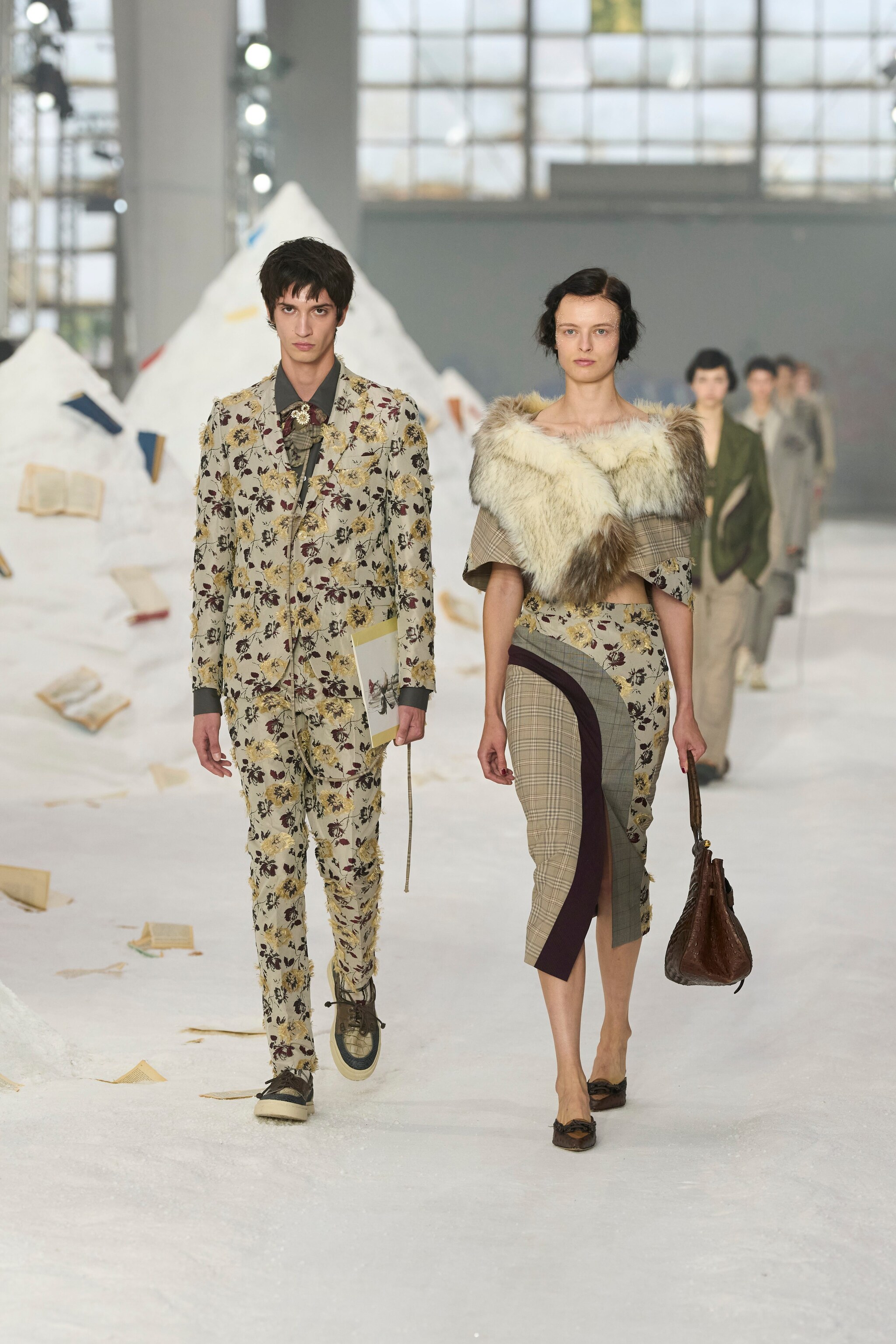 Soavi abiti in seta lilla e sontuosi modelli principeschi in tulle, fantasie floreali, stampe rigate e capi in denim patchwork sfilano alla Milano Fashion Week sulla passerella Primavera/Estate 2026 di Antonio Marras