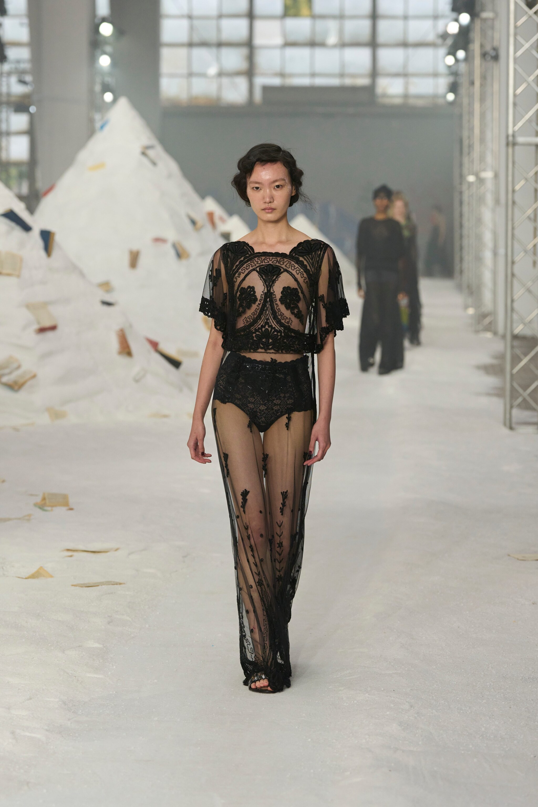 Soavi abiti in seta lilla e sontuosi modelli principeschi in tulle, fantasie floreali, stampe rigate e capi in denim patchwork sfilano alla Milano Fashion Week sulla passerella Primavera/Estate 2026 di Antonio Marras