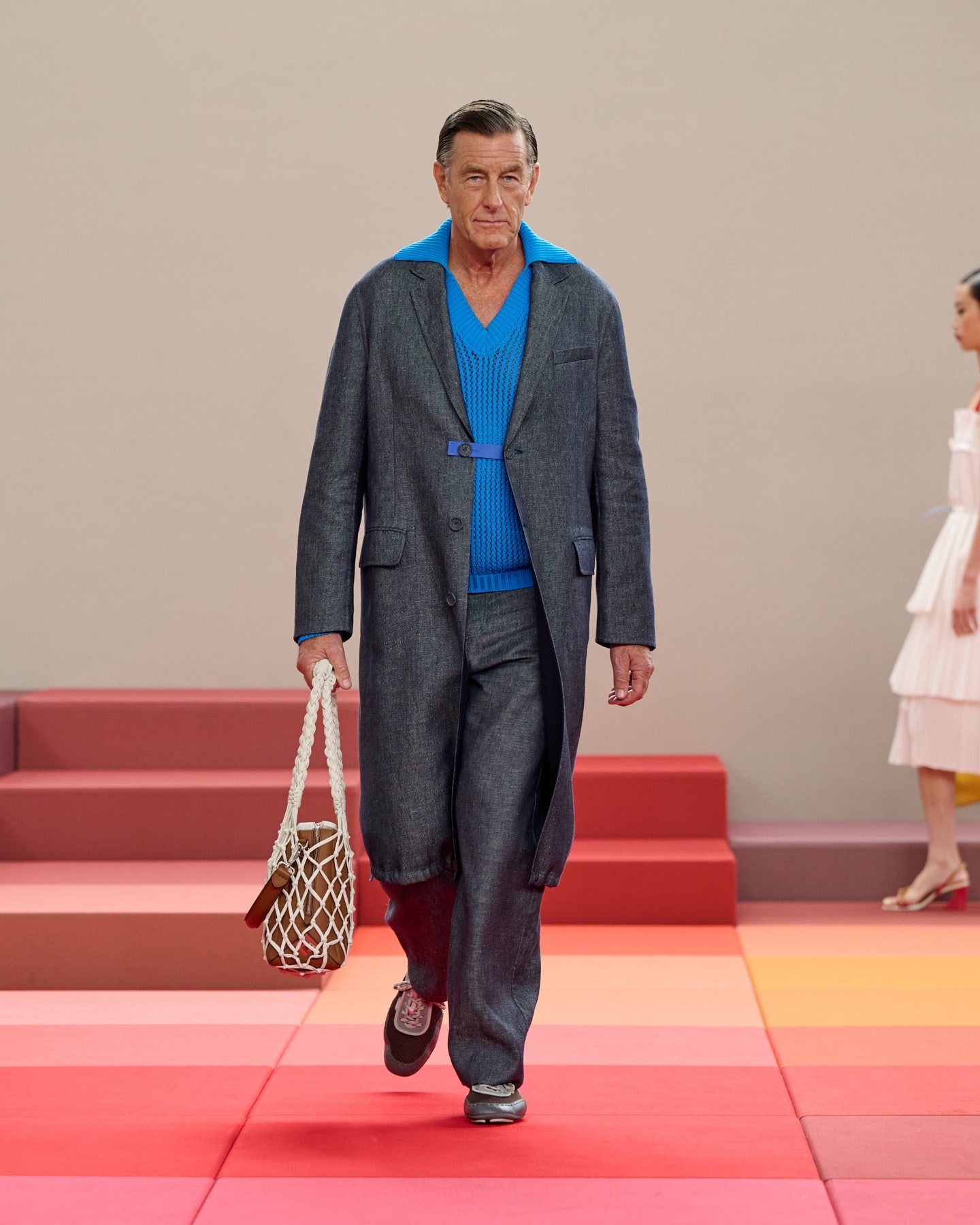 Linee rigorose e accostamenti color block si mescolano con pizzo floreale, intrecci knitting e con dettagli rubati allo sportswear sulla passerella Primavera/Estate 2026 di Fendi nella collezione presentata alla Milano Fashion Week.