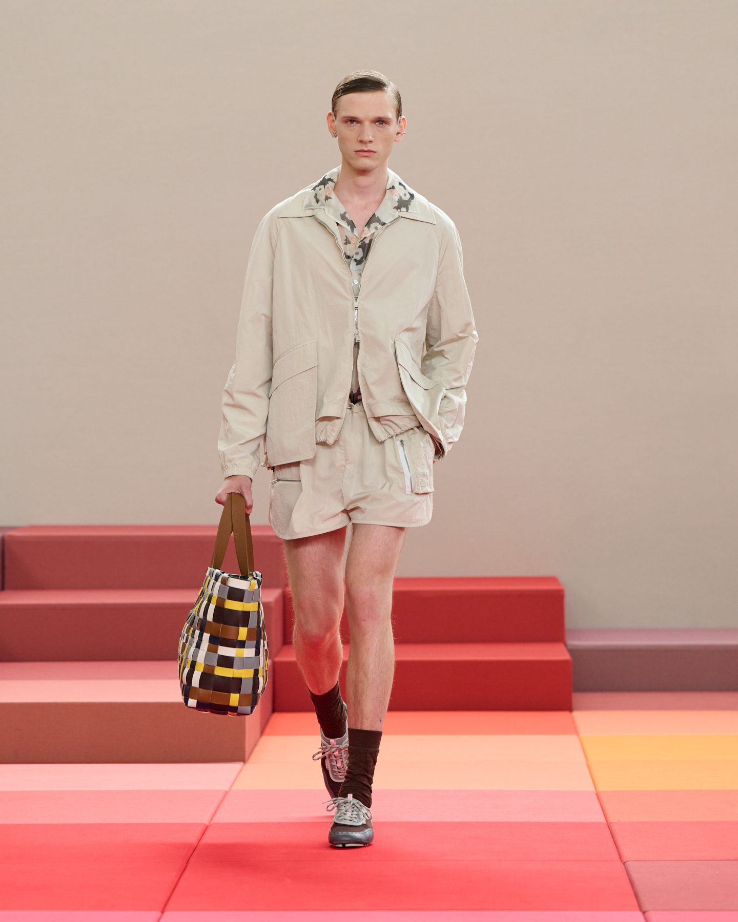 Linee rigorose e accostamenti color block si mescolano con pizzo floreale, intrecci knitting e con dettagli rubati allo sportswear sulla passerella Primavera/Estate 2026 di Fendi nella collezione presentata alla Milano Fashion Week.