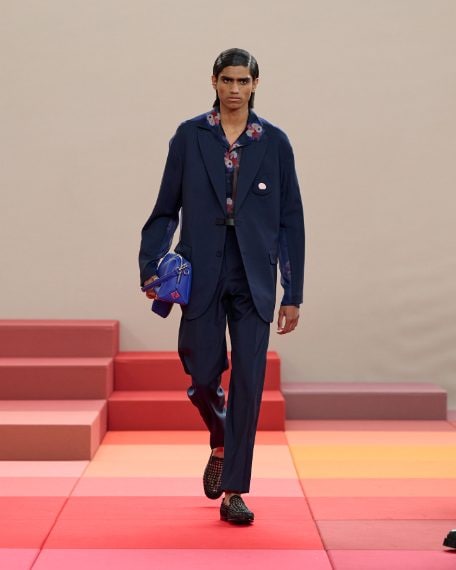 Linee rigorose e accostamenti color block si mescolano con pizzo floreale, intrecci knitting e con dettagli rubati allo sportswear sulla passerella Primavera/Estate 2026 di Fendi nella collezione presentata alla Milano Fashion Week.