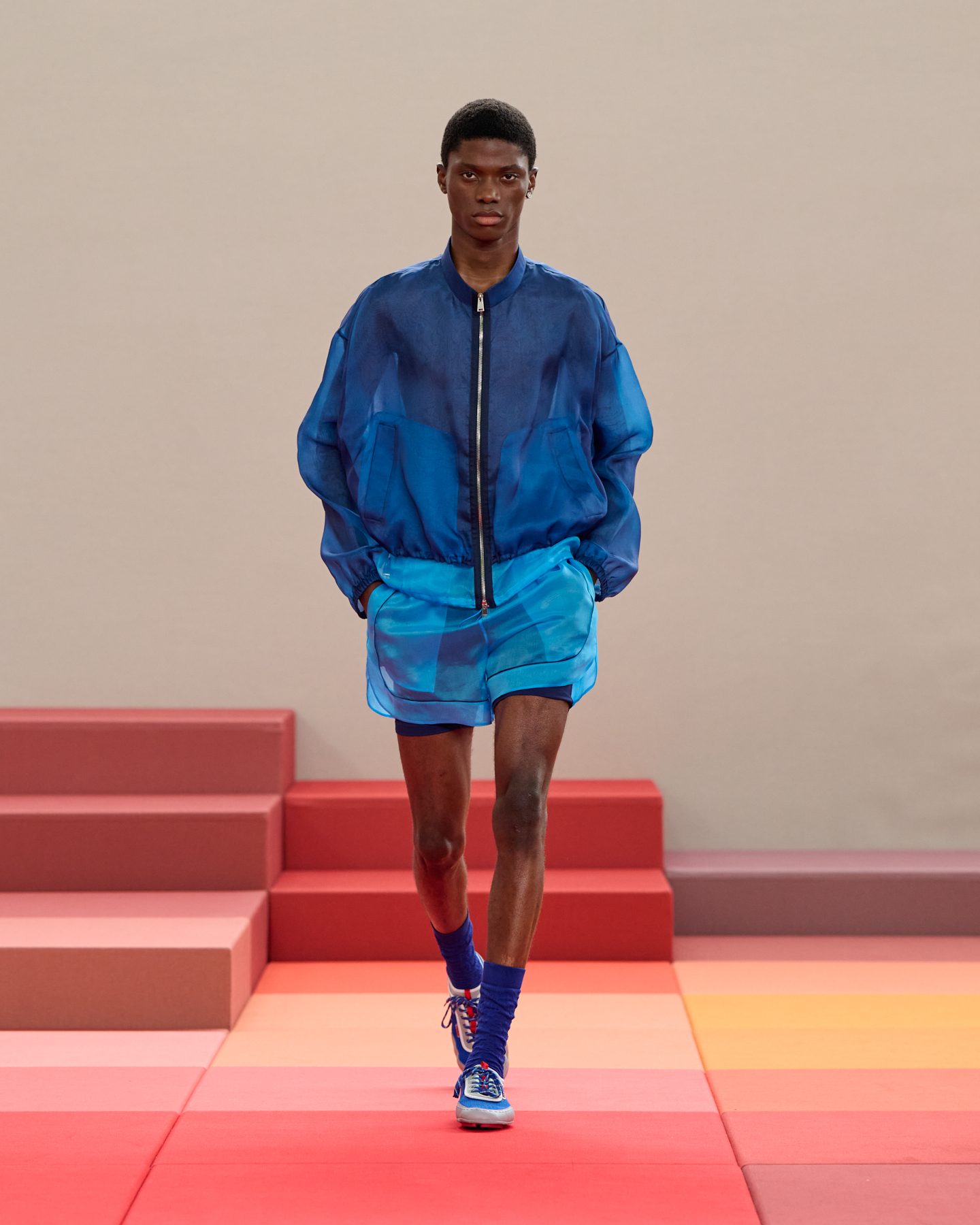 Linee rigorose e accostamenti color block si mescolano con pizzo floreale, intrecci knitting e con dettagli rubati allo sportswear sulla passerella Primavera/Estate 2026 di Fendi nella collezione presentata alla Milano Fashion Week.