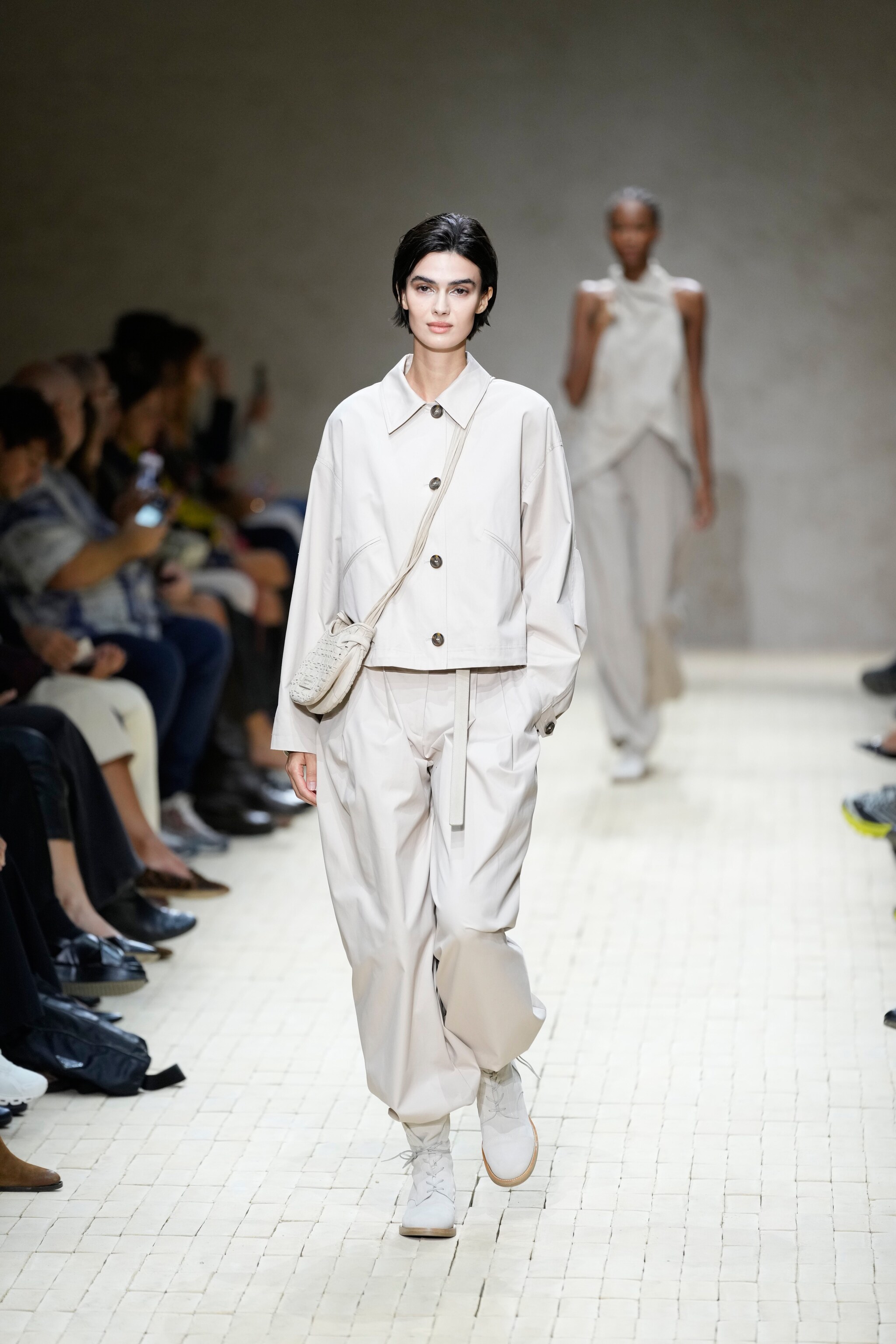 Va in scena alla Milano Fashion Week la prima sfilata di Emporio Armani dopo la morte dello stilista. Sulla passerella Primavera/Estate 2026 abiti morbidi nei toni del beige e del grigio, alternati a colori pastello e fantasie floreali, silhouette comode e tessuti leggeri come la seta.