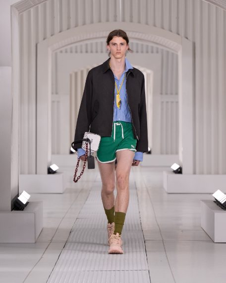 Blazer oversize e polo, lunghi gilet dai grossi bottoni e ancora maxi felpe, canotte a righe e abiti chemisier in seta sfilano alla Milano Fashion Week sulla passerella Primavera/Estate 2026 di Onitsuka Tiger