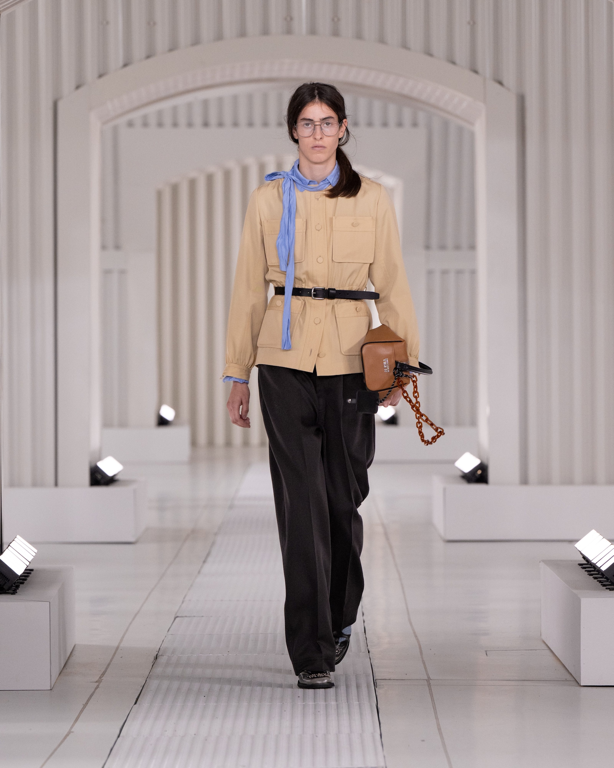 Blazer oversize e polo, lunghi gilet dai grossi bottoni e ancora maxi felpe, canotte a righe e abiti chemisier in seta sfilano alla Milano Fashion Week sulla passerella Primavera/Estate 2026 di Onitsuka Tiger