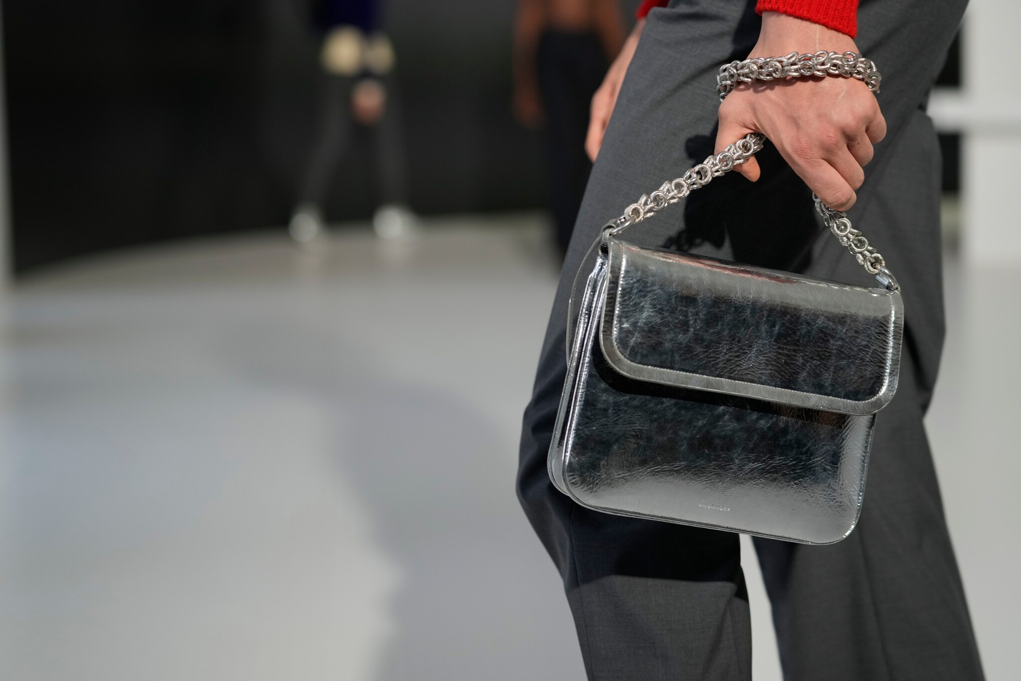 Abiti velati o dagli orli "spigolosi", maglioncini crop e abiti con oblò che mostrano reggiseni coperti di macro paillettes sfilano alla Milano Fashion Week sulla passerella Primavera/Estate 2026 di Jil Sander nella prima collezione firmata da Simone Bellotti
