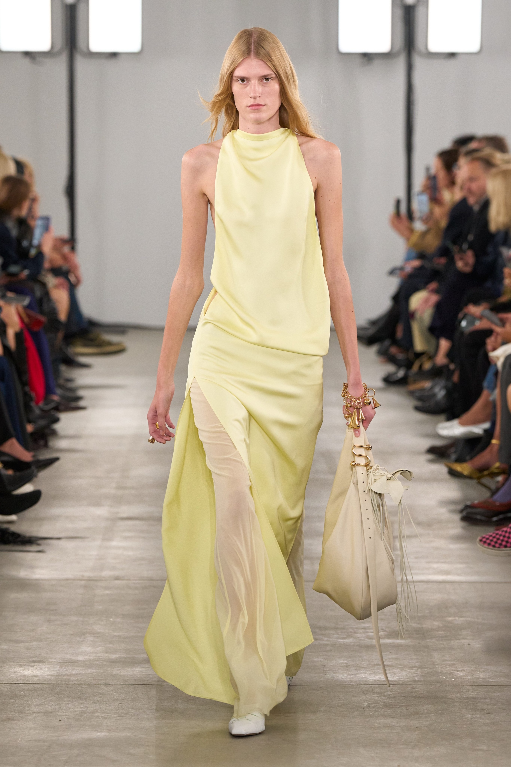 Lunghi trench, abiti giallo burro e look total black dai tagli asimmetrici sfilano alla Milano Fashion Week sulla passerella Primavera/Estate 2026 di Sportmax.