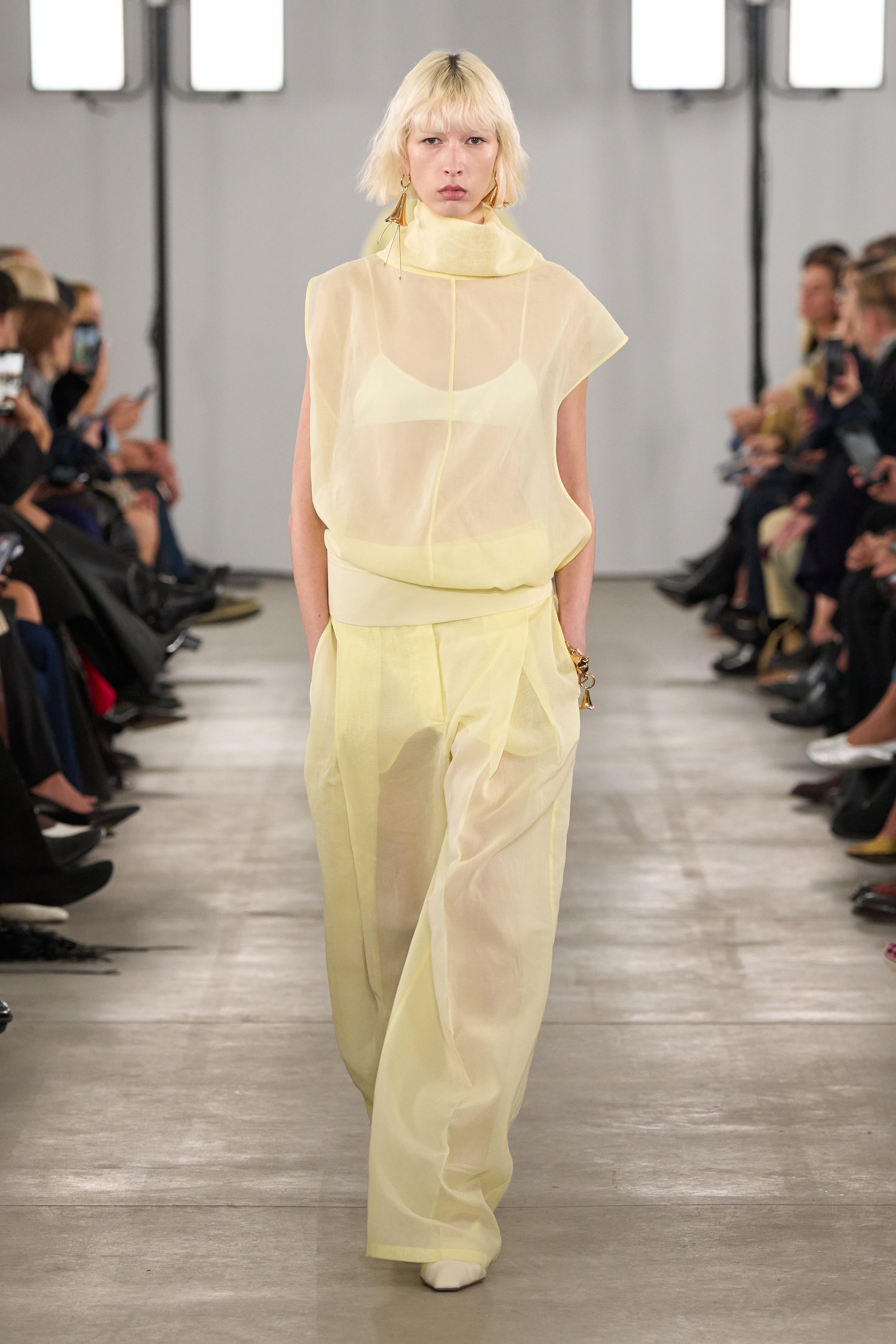 Lunghi trench, abiti giallo burro e look total black dai tagli asimmetrici sfilano alla Milano Fashion Week sulla passerella Primavera/Estate 2026 di Sportmax.