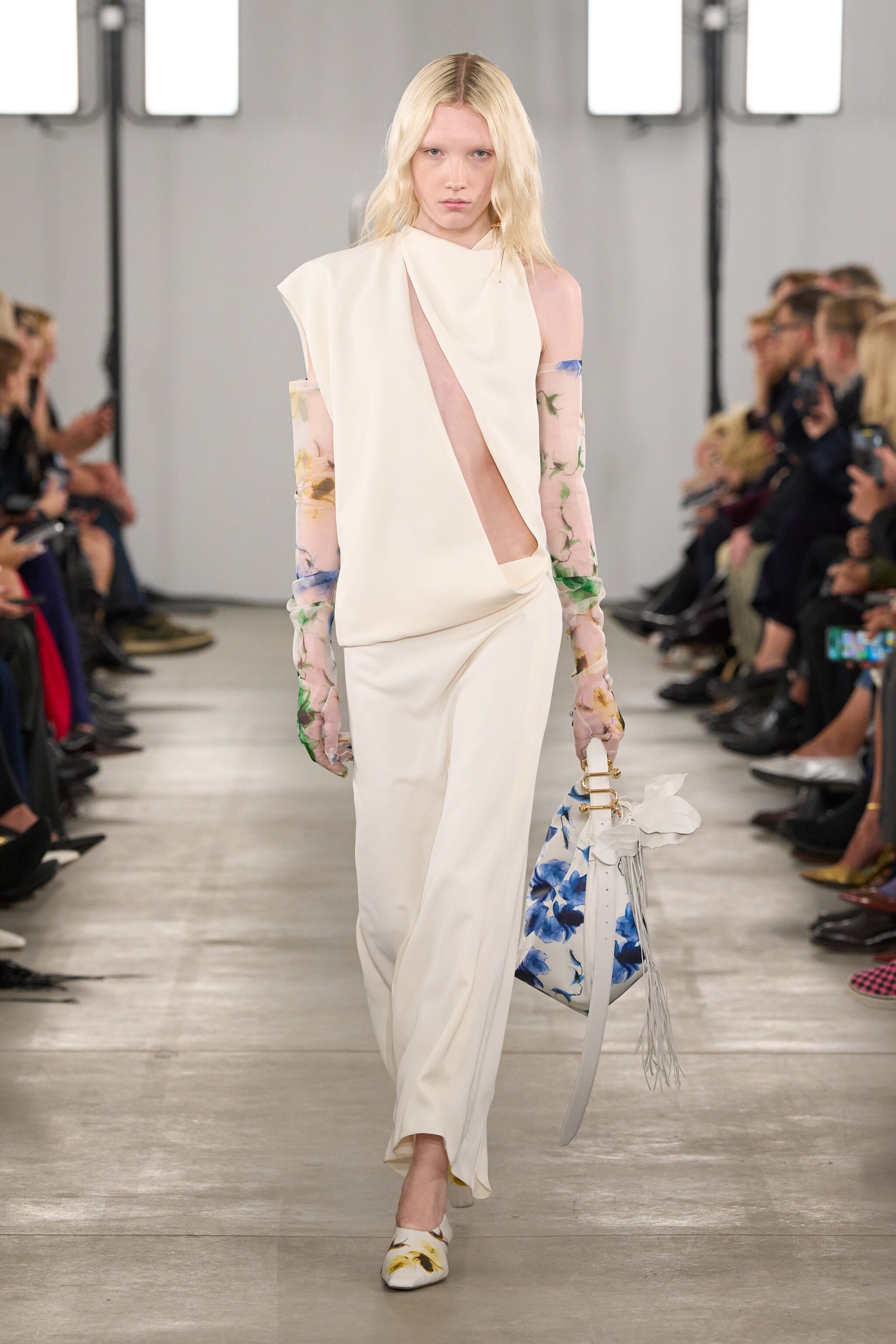 Lunghi trench, abiti giallo burro e look total black dai tagli asimmetrici sfilano alla Milano Fashion Week sulla passerella Primavera/Estate 2026 di Sportmax.