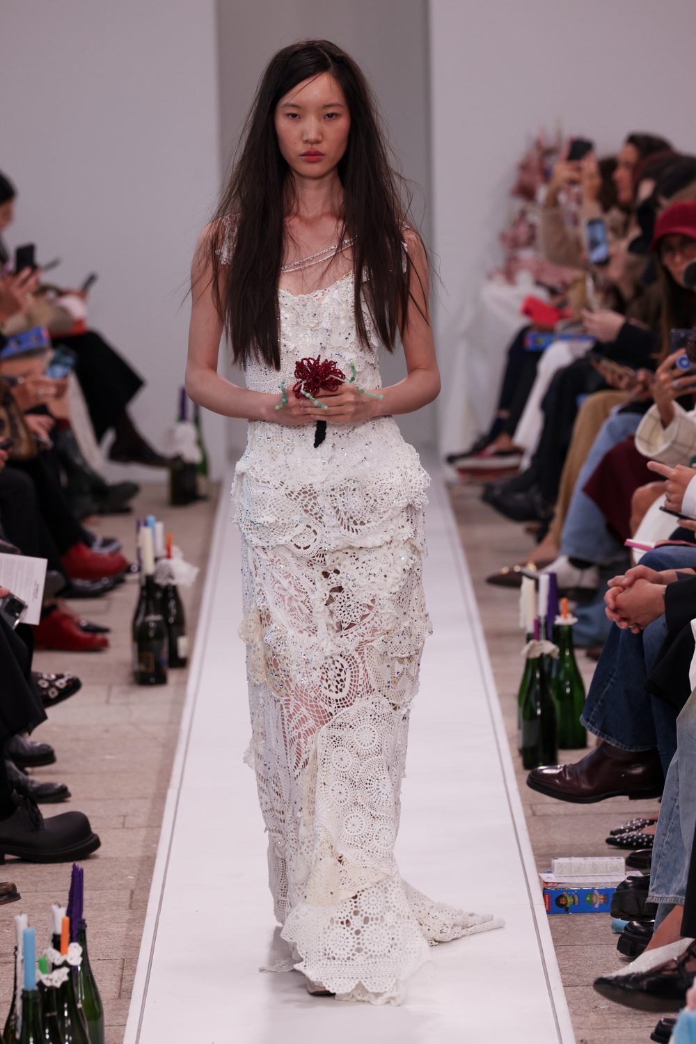 Look a effetto layering, inserti crochet, rimandi al mondo della lingerie e dell'intimo e ancora canotte e slip stampati sfilano alla Milano Fashion Week sulla passerella Primavera/Estate 2026 di Marco Rambaldi.